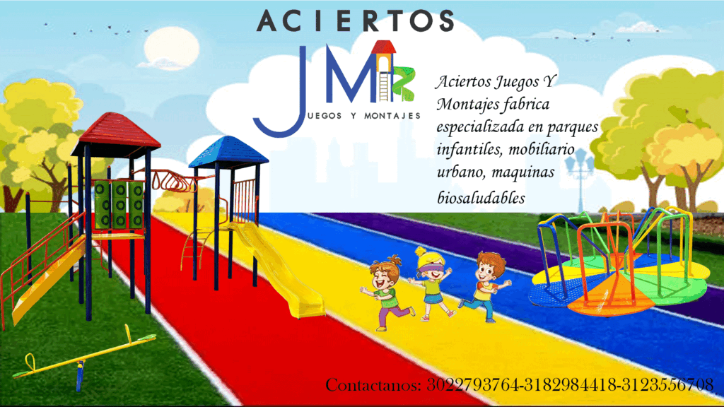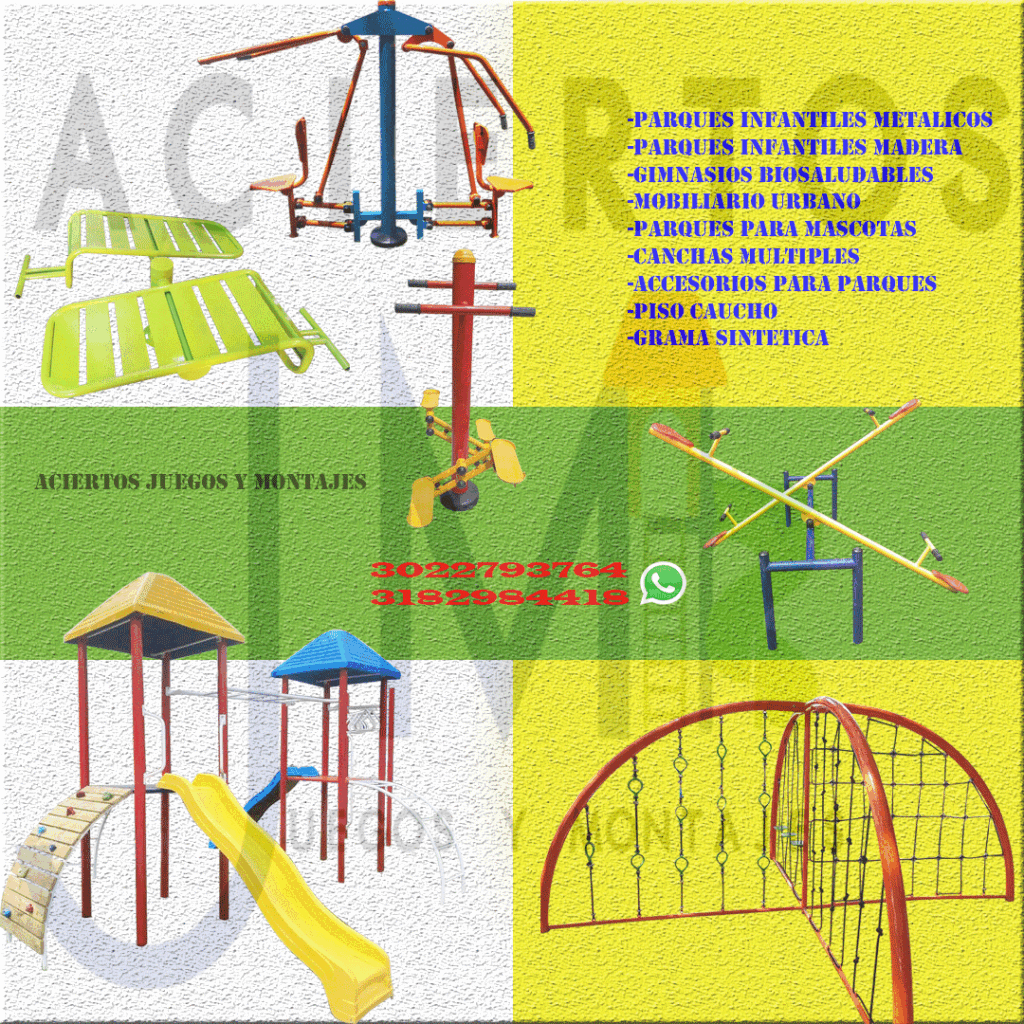 En Aciertos Juegos Y Montajes SAS fabricamos directamente parques infantiles, sube y bajas, carruseles, resortados…