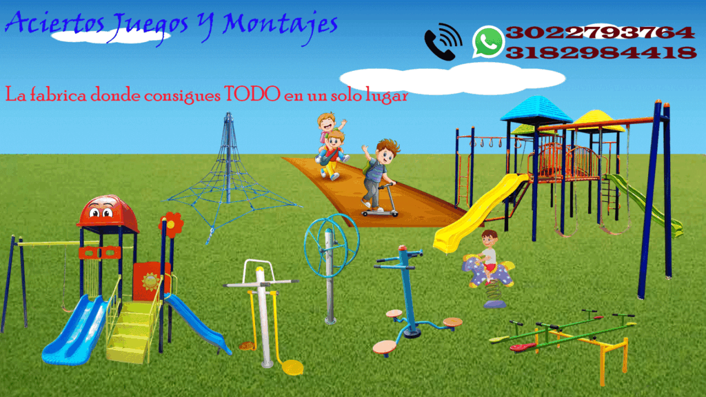 En Aciertos Juegos Y Montajes SAS fabricamos directamente parques infantiles, sube y bajas, carruseles, resortados…
