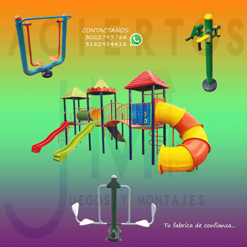 En Aciertos Juegos Y Montajes fabricamos con la mejor calidad, somos una empresa que fabrica desde bancas de concreto, canecas en acero inoxidable, todo el mobiliario urbano, parques infantiles, maquinas biosaludables hasta fibra de vidrio, techos, rodaderos, canchas multiples,mesas y mucho mas, hacemos envios a toda Colombia ademas de manejamos los mejores precios del mercado.